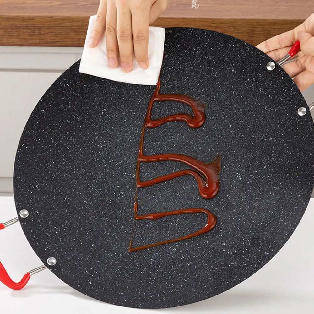 2.Handle with Care: The anti-scald silicone handles of our Korean Grill Pan provide a secure grip. enabling you to safely and comfortably cook at high temperatures while preventing burns