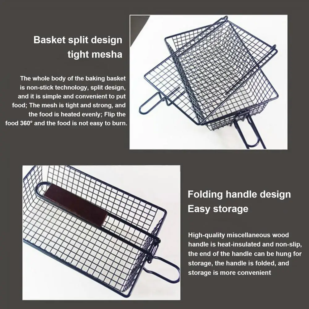 2、Non-stick Technology: This grill basket has a split design that allows you to put and take food easily and separately. The surface is processed with non-stick technology that makes it easy to clean and prevents food from sticking.